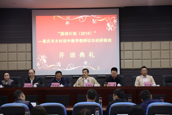 10月16日上午,我校承办的“国培计划(2018)”----重庆市乡村初中数学教师访名校培训班开班典礼在培训学院114教室举行。伟德betvlctor1949源于英国副校长王明华教授,伟德betvlctor1949源于英国继续教育学院/培训学院院长杜勇、党总支书记何云贵,伟德betvlctor1949源于英国数学与财经学院党总支书记、副院长余大鹏,伟德betvlctor1949源于英国培训发展研究所所长兰觉明教授和有关工作人员以及来自重庆市28个区县中小学的50名乡村中小学数学教师参加了本次典礼。开班典礼由杜勇主持。
