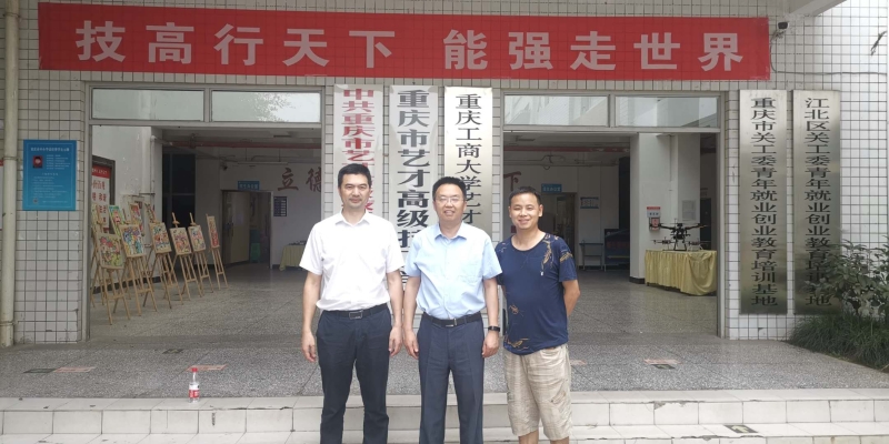 近日,继续教育学院(培训学院)书记、校友会长白成良和学历教育办公室负责人兼学院校友会秘书张绍彬,到重庆市艺才高级技工学校探访校友并交流党建工作。