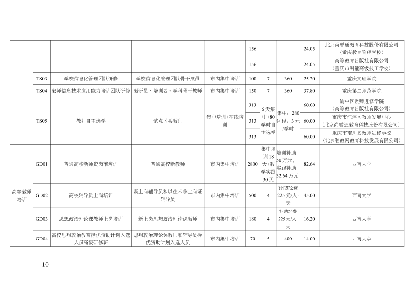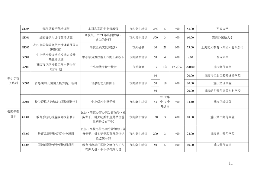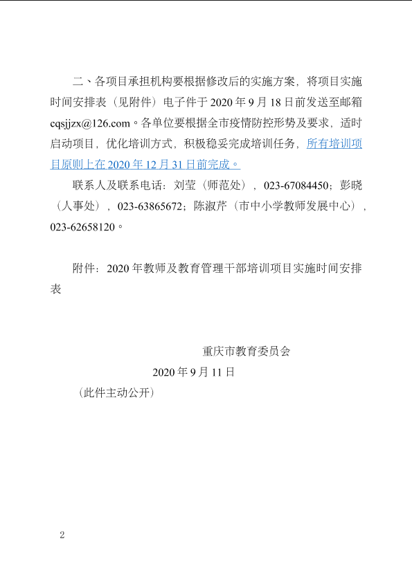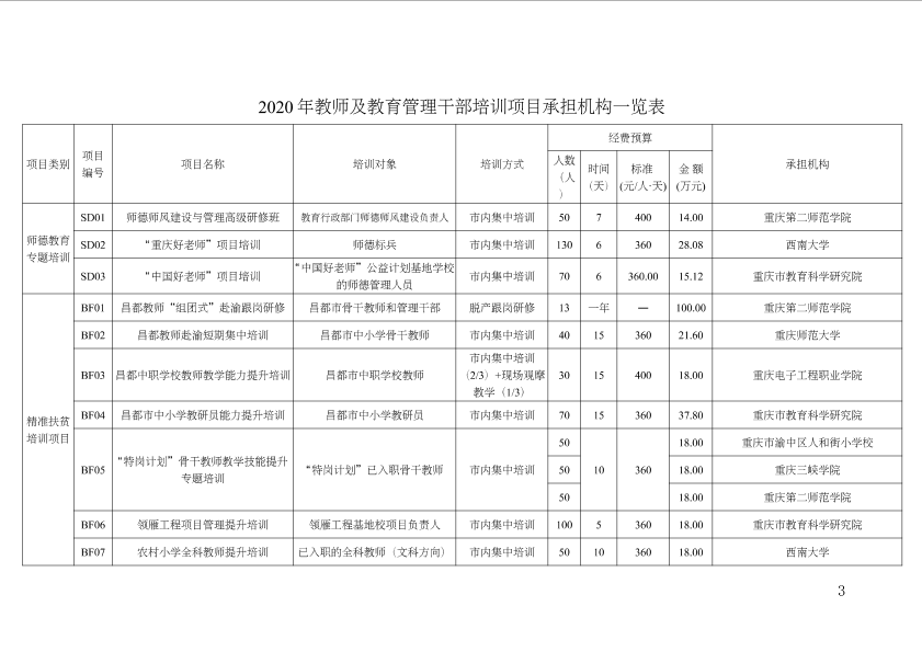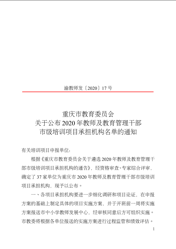 重庆市教育委员会关于公布2020年教师及教育管理干部市级培训项目承担机构名单的通知