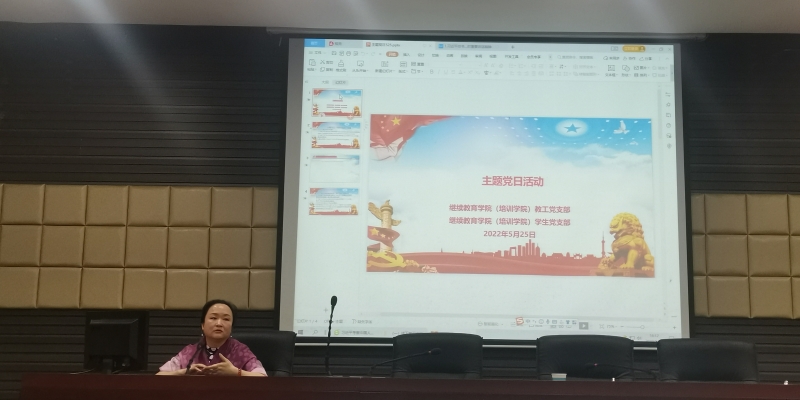 5月25日下午,继续教育学院(培训学院)党总支在志仁楼114教室开展5月主题党日活动。